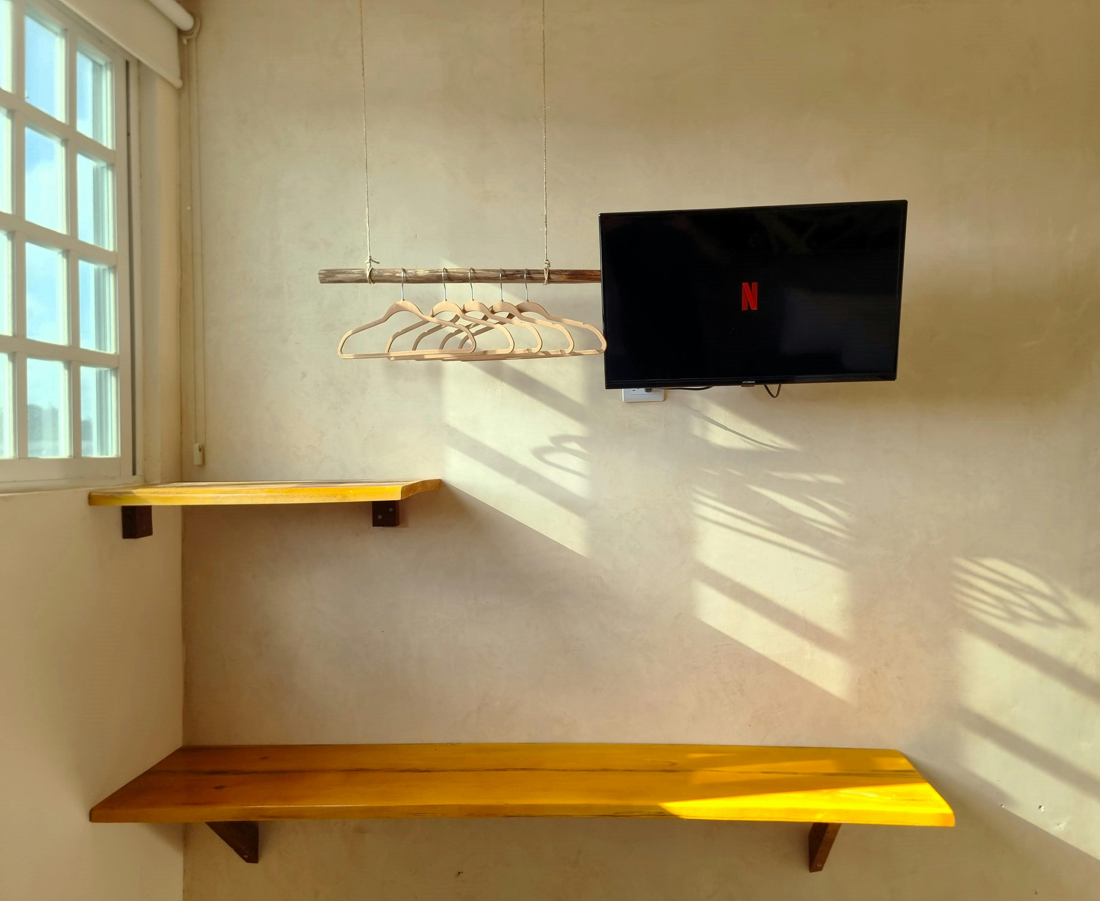 - Queen-size bed (full en-suite bathroom) & dedicated work desk
